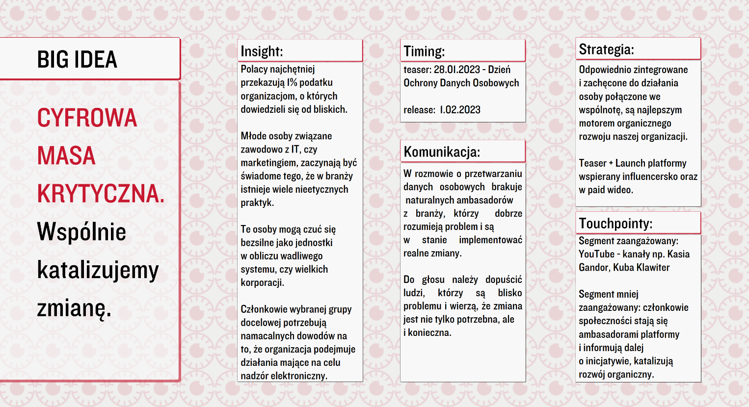 Każdy uczestnik konkursu otrzyma w ciągu roku zaproszenia na nasze wydarzenia branżowe, takie jak KTR Afterhours, YC Afterhours, pokazy reklam i inne.